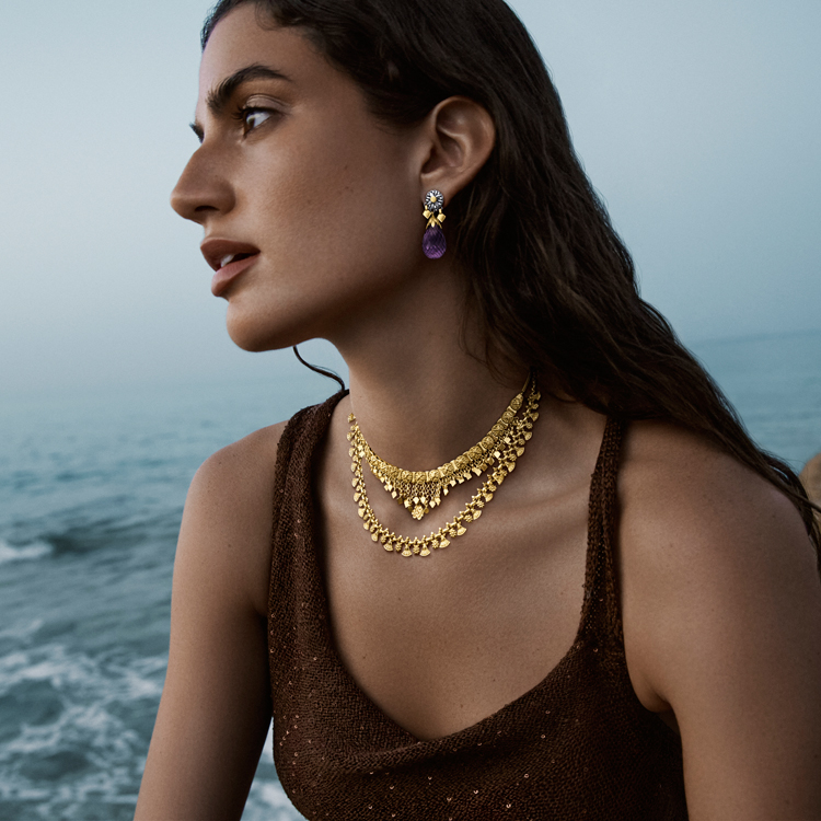 Azza Fahmy’s newest chapter of the Wonders of Nature collection reflects years of personal and artistic exploration. Inspired by the symbolism and forms of flowers—from lotus and daisy to jasmine—the designs capture nature’s expressive power through the brand’s signature craftsmanship. Colors evoke optimism, calm, and individuality. Head Designer Amina Ghali drew inspiration from travels through the Philippines, Vietnam, and Cambodia, where she observed nature flourishing in unexpected spaces. Combining luminous stones like amethyst with 18kt gold and sterling silver, the collection fuses floral motifs with Arabic calligraphy, celebrating individuality, beauty, and conveying joy, love, peace, and blessing.