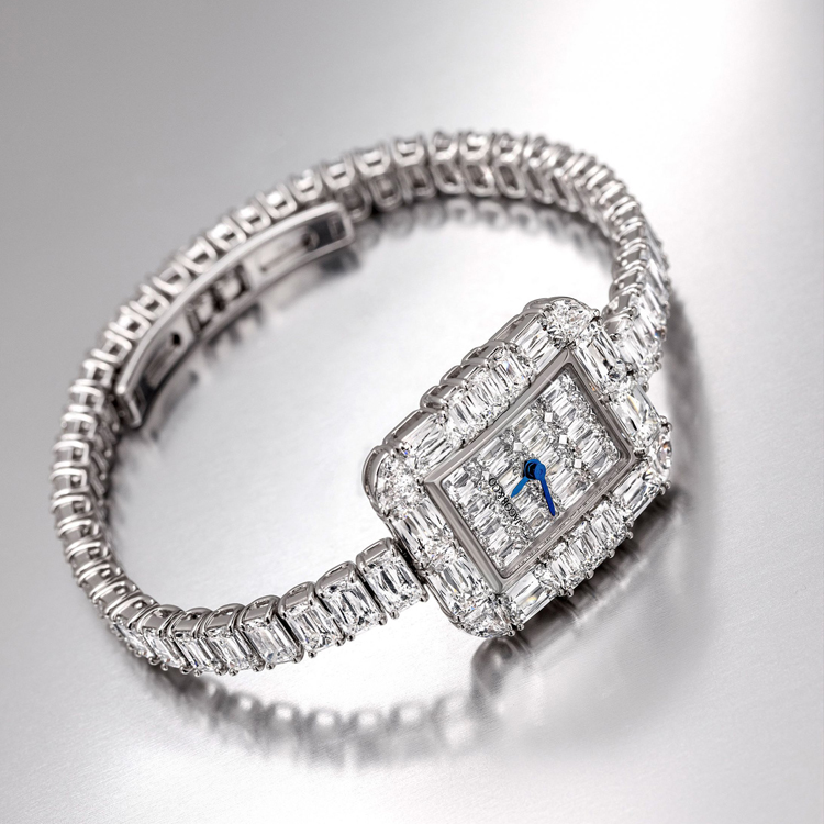 The Harry Winston Ocean Tourbillon Big Date is a technical achievement that offers an unparalleled aesthetic experience. The tourbillon is traditionally mounted on the plate of the watch and can only be seen (when it is visible at all) from one angle. The Ocean Tourbillon Big Date, on the other hand, departs radically from the conventional tourbillon construction, to create a "floating tourbillon" –one in which the tourbillon carriage and the regulating organs carried on it appear to float freely in space, and not only that, but do so with no immediately visible mechanical connection to the rest of the movement.