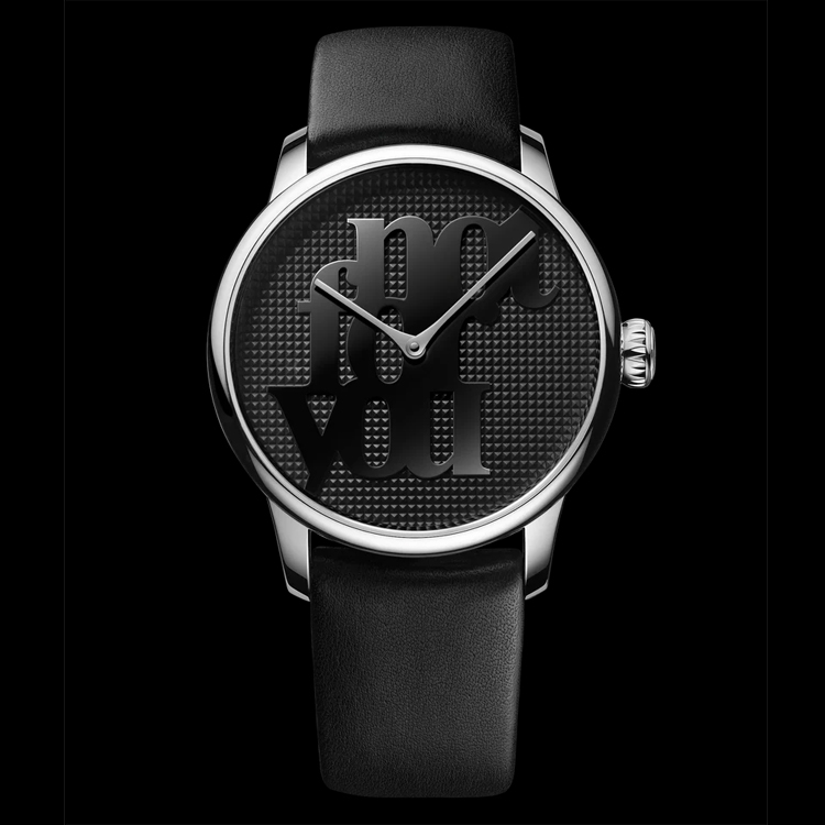 Louis Erard collaborates with artist Monica Bonvicini to create “Not For You,” a unisex 39mm watch that transforms timekeeping into a sculptural statement. Inspired by Bonvicini’s bold, darkly humorous work, the watch challenges authority, power, and gender norms. Its matte Clou de Paris dial features mirror-polished text that reflects the wearer, while guilloché patterns evoke her world of nails, leather, and metal. Rhodium-plated hands slice across the dial like sculptural elements. The caseback bears “not for you” in polished letters under sapphire glass, with “Louis Erard x Monica Bonvicini” and “Limited Edition 1 of 178,” emphasizing exclusivity and the artistic statement of this radical timepiece.