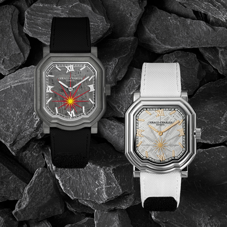 Gerald Charles unveils the Maestro 2.0 Meteorite, the Maison’s first meteorite watch with a small-seconds indicator, shaped in the iconic Maestro case. Meteorite serves as a canvas, transforming cosmic history into contemporary art. The dial narrates force, tension, and transformation, capturing the moment a meteorite strikes Earth- a playful homage to Gérald Charles Genta’s imagination. Two models interpret this story: the Black model evokes impact with dark meteorite, red flashes, and a fiery small-seconds gradient in a Dark blast steel case, while the silver model symbolizes post-explosion stillness, with silver meteorite, gold accents, and polished steel, crystallizing the celestial moment in time.