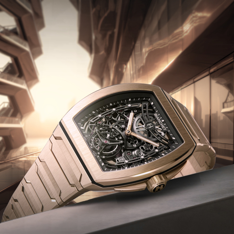 On the occasion of WatchTime New York, Bianchet presented the evolution of its latest tourbillon collection: the UltraFino Gold Edition. This exceptional timepiece, crafted in 18K rose gold, combines sculptural design, architectural geometry, and the Maison’s watchmaking expertise, embodied by the ultra-thin automatic UT01 movement. The UltraFino Gold Edition reimagines Bianchet’s ultra-thin tonneau-shaped tourbillon in a precious 18K rose gold case. This new Bianchet timepiece is available in two distinct versions: the first features an integrated gold bracelet for seamless elegance and continuity of form. In contrast, the second boasts a black rubber strap with a matching gold pin buckle, offering a sportier yet refined aesthetic.