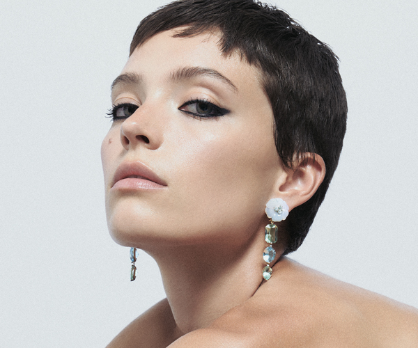 The Blanche jewellery collection, inspired by the delicate Arabian jasmine, expands with a new set featuring a necklace, earrings, and ring in Armani’s 18K gold with precious stones. The semi-rigid choker showcases a milky agate flower with brilliant-cut diamonds and decorative leaves, complemented by topazes and prasiolite in soft green and pale blue. The collection also includes elegant flower pendant earrings in two lengths and a ring featuring three large stones. Crafted with refined goldsmith expertise, Giorgio Armani Fine Jewellery, launched in 2019, completes the brand’s universe.