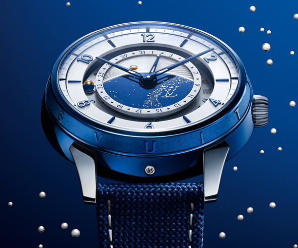 Louis Vuitton and De Bethune unveil the LVDB-03 GMT Louis Varius, part of the Louis Varius Project and aligned with Louis Vuitton’s Art of Travel. Collaborating with Master Watchmaker Denis Flageollet, the project merges a modern interpretation of the 18th-century Sympathique with De Bethune’s DB25 GMT Starry Varius. It highlights visionary partnerships and supports the Louis Vuitton Watch Prize for Independent Creatives, including mentorship for emerging watchmakers. Housed in the Tambour Taiko case, polished titanium is blued via De Bethune’s thermal oxidation, creating vibrant color and dynamic reflections that showcase Louis Vuitton’s design and De Bethune’s technical expertise. |