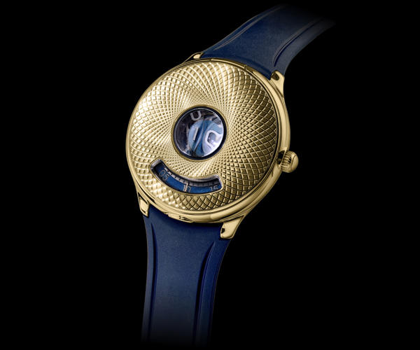Celebrating a decade since the revival of the Maison, Czapek looked to the future with the Time Jumper, powered by its new in-house Calibre 10. A modern guilloché adorned the 40.5mm steel case, while the half-hunter cover revealed glimpses of the open-worked movement. Released as a limited edition of 100 in steel and 30 in 3N 18-carat gold, the watch was unveiled at Czapek’s 10th Birthday celebration in Geneva on November 12. Inspired by 19th-century pocket watches, it featured a jumping hour complication on two discs and trailing minutes on a peripheral ring, with a black-hole guilloché creating a striking optical illusion. |