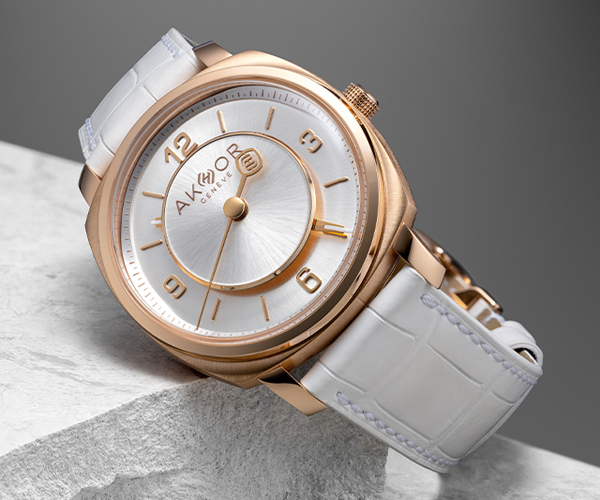 After Bleu Azur des Sommets and Vert Emeraude des Cimes, AK(h)or explores white as a source rather than a color. In watchmaking, light reveals structure, sharpens angles, and highlights finishing details. The white dial emphasizes clarity, balance, and architectural precision. Built on a patented dual-disc system with a suspended upper disc, it creates depth and lightness while respecting mechanical stability. The COSC-certified AK-10 calibre, with 117 components, occupies the 39 mm case with exacting proportions. White becomes a technical revealer, transforming the dial into a three-dimensional structure where modernity emerges from precision and disciplined mechanical innovation. |