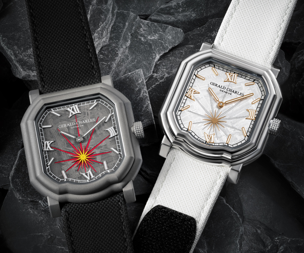 Gerald Charles unveils the Maestro 2.0 Meteorite, the Maison’s first meteorite watch with a small-seconds indicator, shaped in the iconic Maestro case. Meteorite serves as a canvas, transforming cosmic history into contemporary art. The dial narrates force, tension, and transformation, capturing the moment a meteorite strikes Earth- a playful homage to Gérald Charles Genta’s imagination. Two models interpret this story: the Black model evokes impact with dark meteorite, red flashes, and a fiery small-seconds gradient in a Dark blast steel case, while the silver model symbolizes post-explosion stillness, with silver meteorite, gold accents, and polished steel, crystallizing the celestial moment in time. |