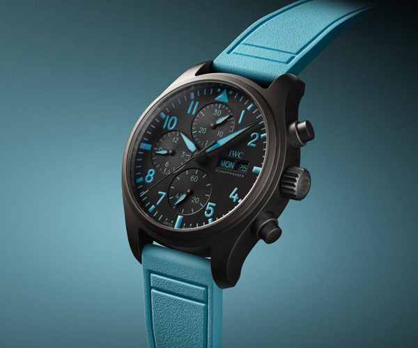 IWC Schaffhausen has collaborated with Mercedes-AMG PETRONAS Formula One™ Team driver, George Russell, on the design of two limited edition Pilot’s Watches. Comprising a chronograph and an automatic model, these editions are both crafted in black zirconium oxide ceramic. They feature black dials with printing and luminescence in a striking blue colour, reflecting the signature blue hue also seen on Russell’s helmet. The watches are equipped with titanium case backs, engraved with the driver’s name and his starting number, “63”. The chronograph is powered by the IWC-manufactured 69380 calibre, while the automatic model features the IWC-manufactured 32112 calibre. Both watches come with durable blue rubber straps fitted with the EasX-CHANGE® system.